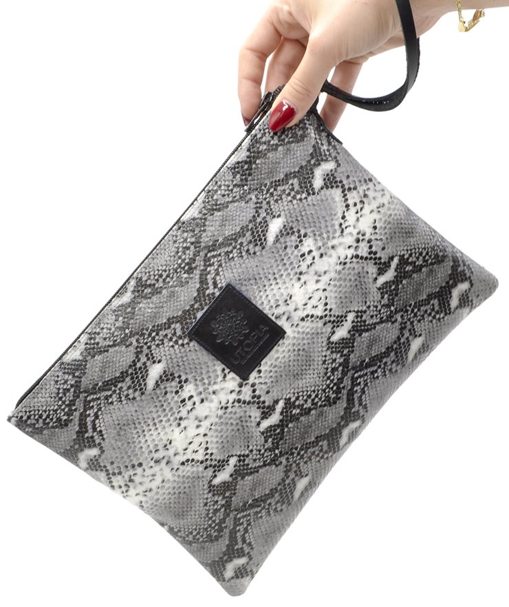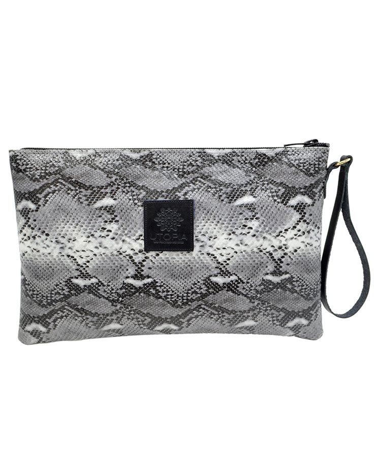 It has leather strap that you can hold it in your wrist or you can hold it as an envelope.