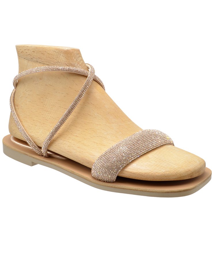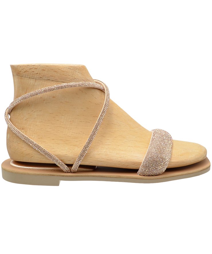 Flat sandals in rose gold color strass.